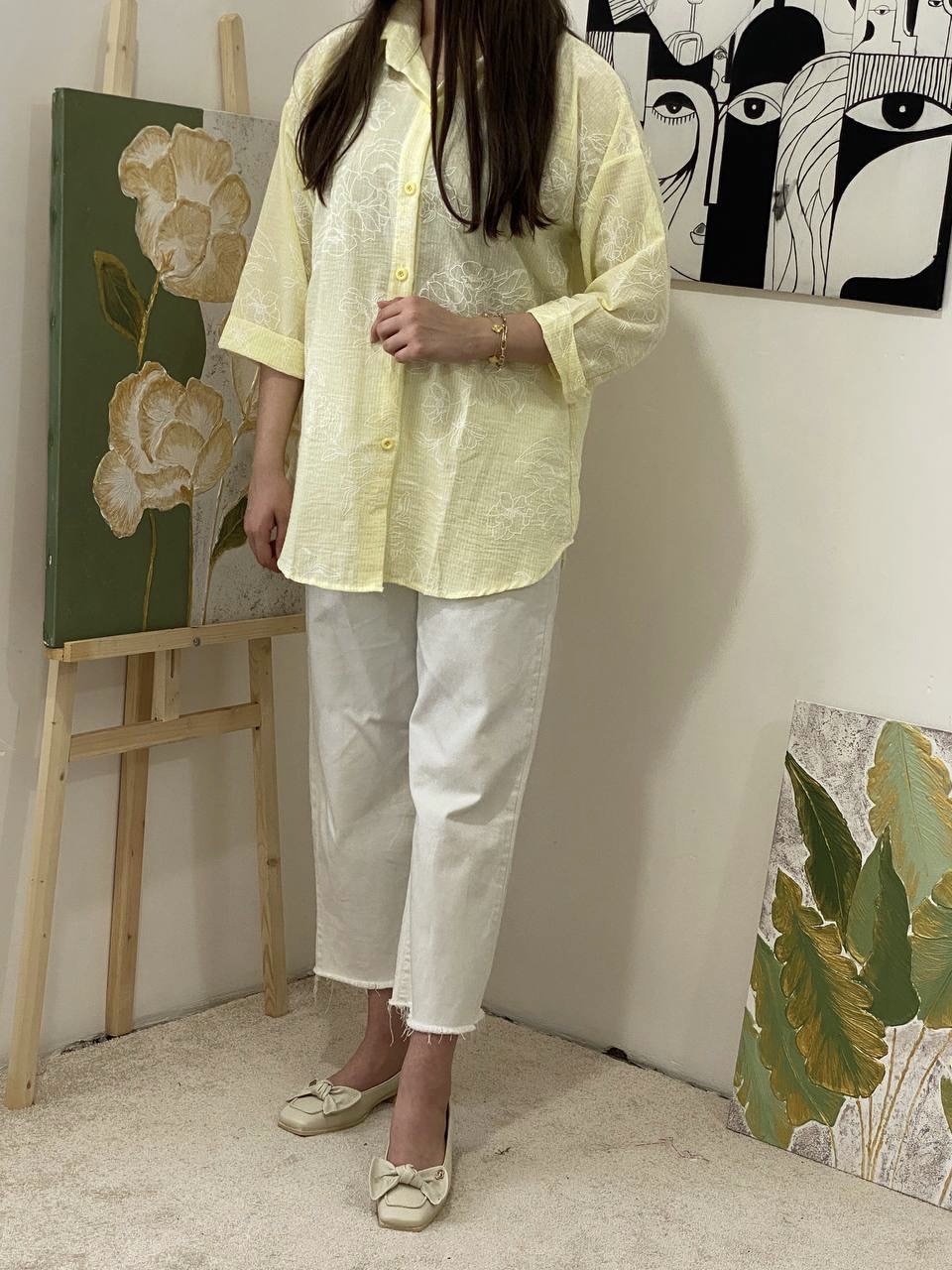 شومیز زنانه لنین زارا مدل راه راه با طرح گل درشت | وارداتی